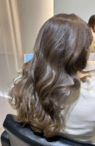 A様:透明感ブラウン×コテ巻きで、“大人可愛い”を両立