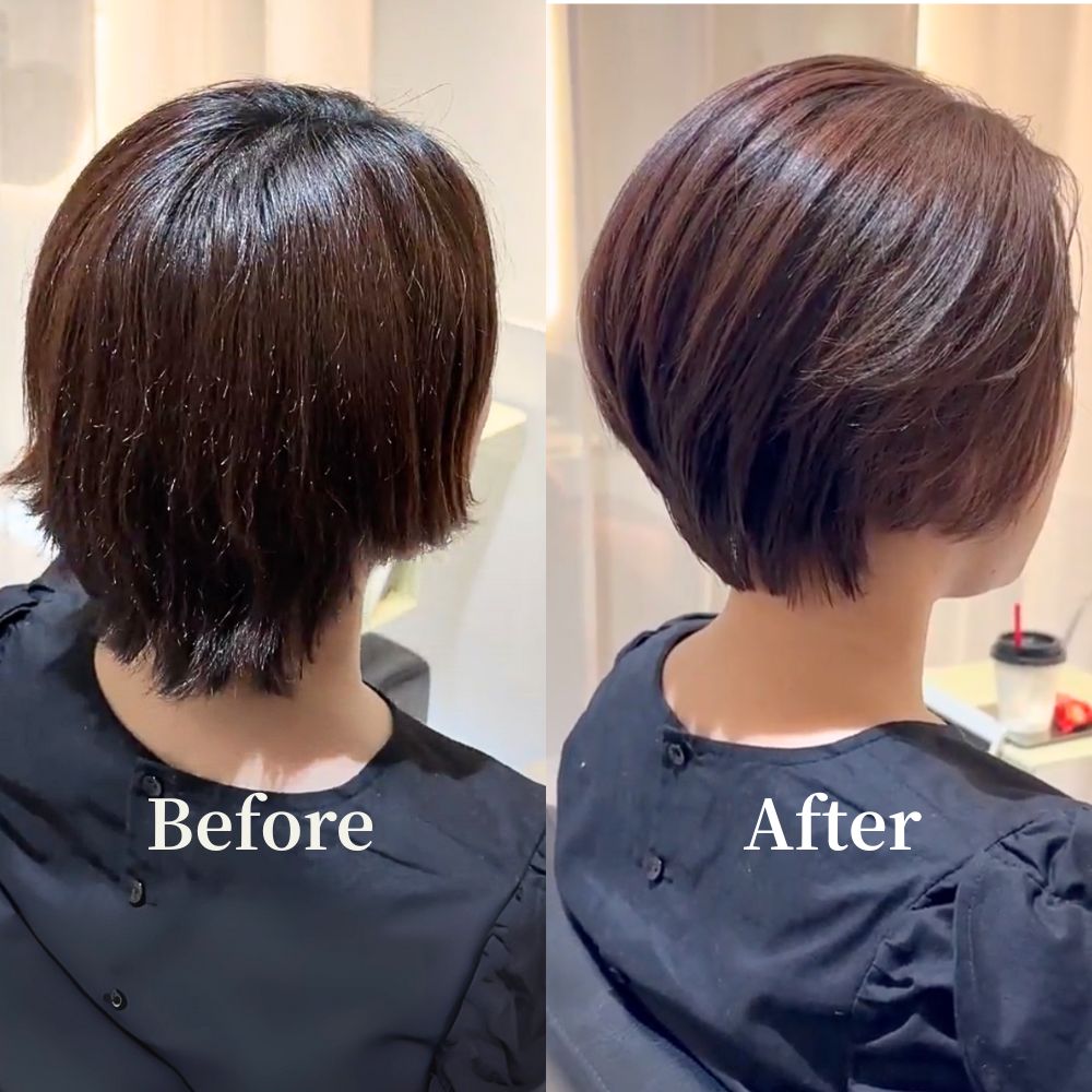 ショートやボブは少しのラインで印象が変わるため、頭の形やお顔のバランスを丁寧に見極めながら施術しています。