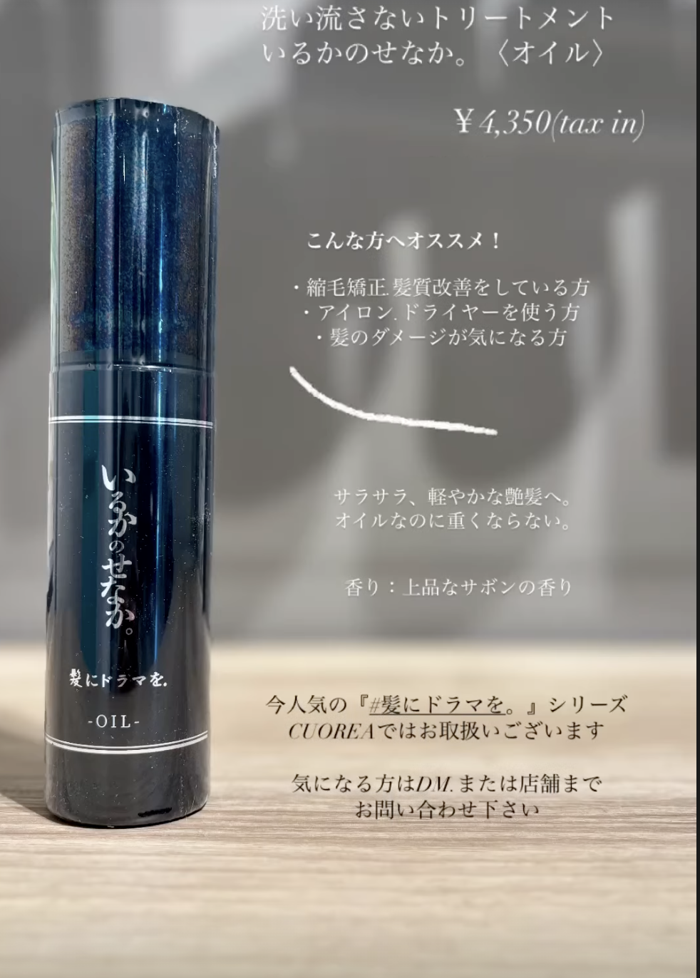 いるかのせなか ヘアオイル ¥4,350(税込)
