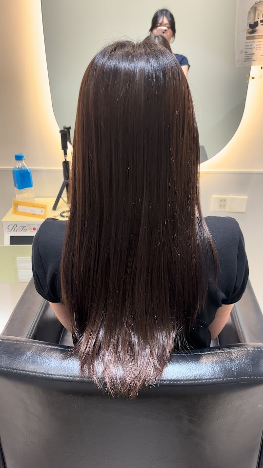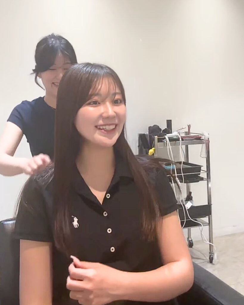 と、AKARIさん。トリートメントが傷んだ髪をしっかり補修してくれて、自然なツヤとサラッサラの指通りの良い髪質に。