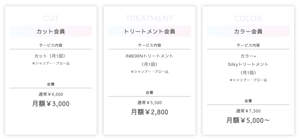 ・カット会員:3,000円
