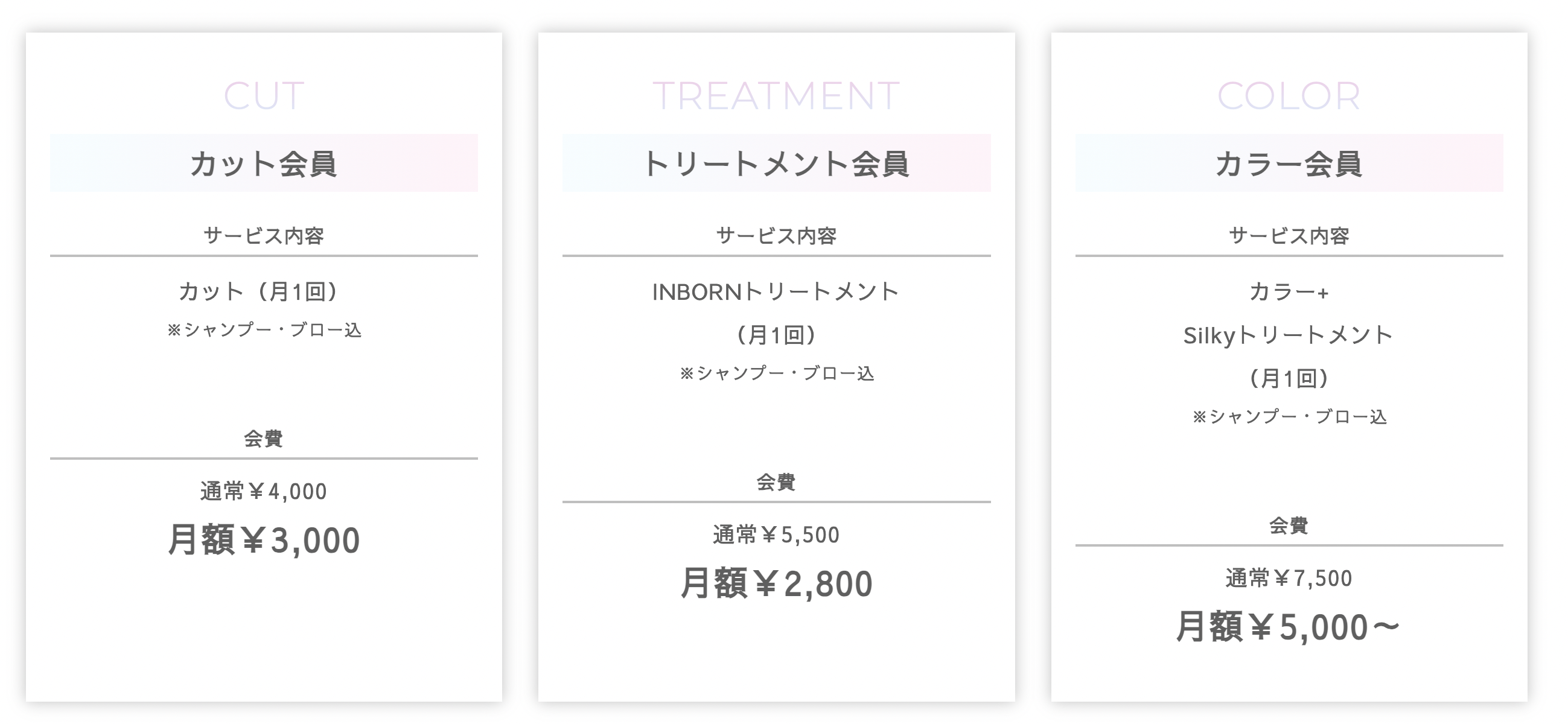 ・カット会員:3,000円