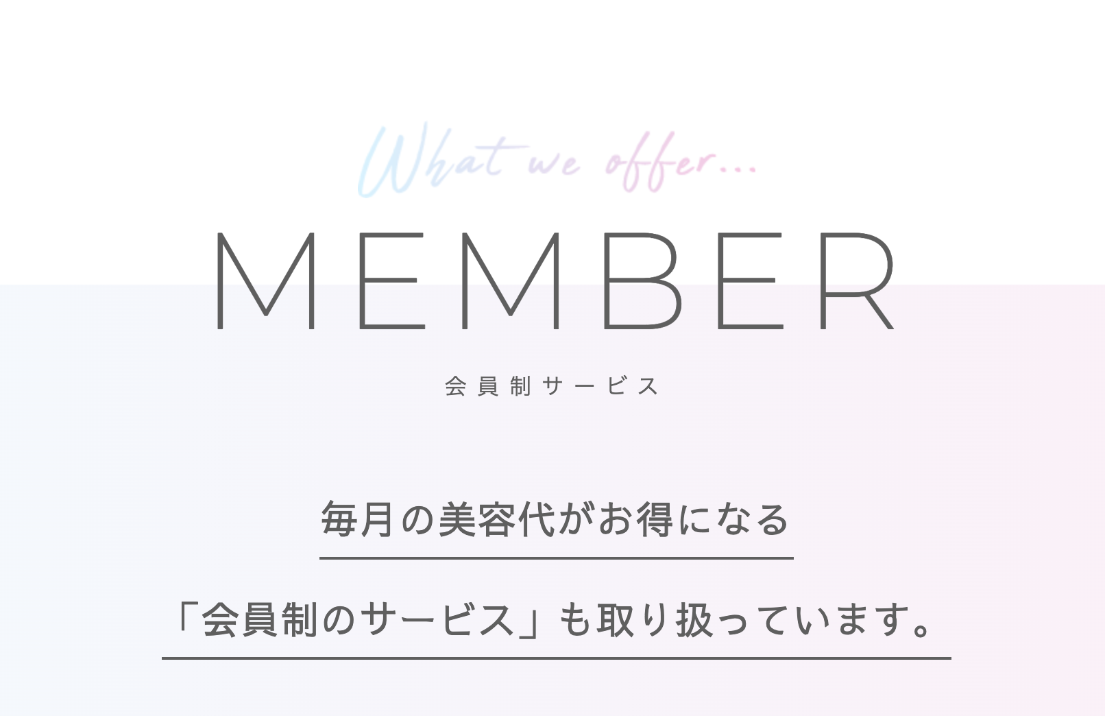 クオレアの会員制サービスは、毎月決まった料金で利用できる、お客様限定の特別なメニューです。